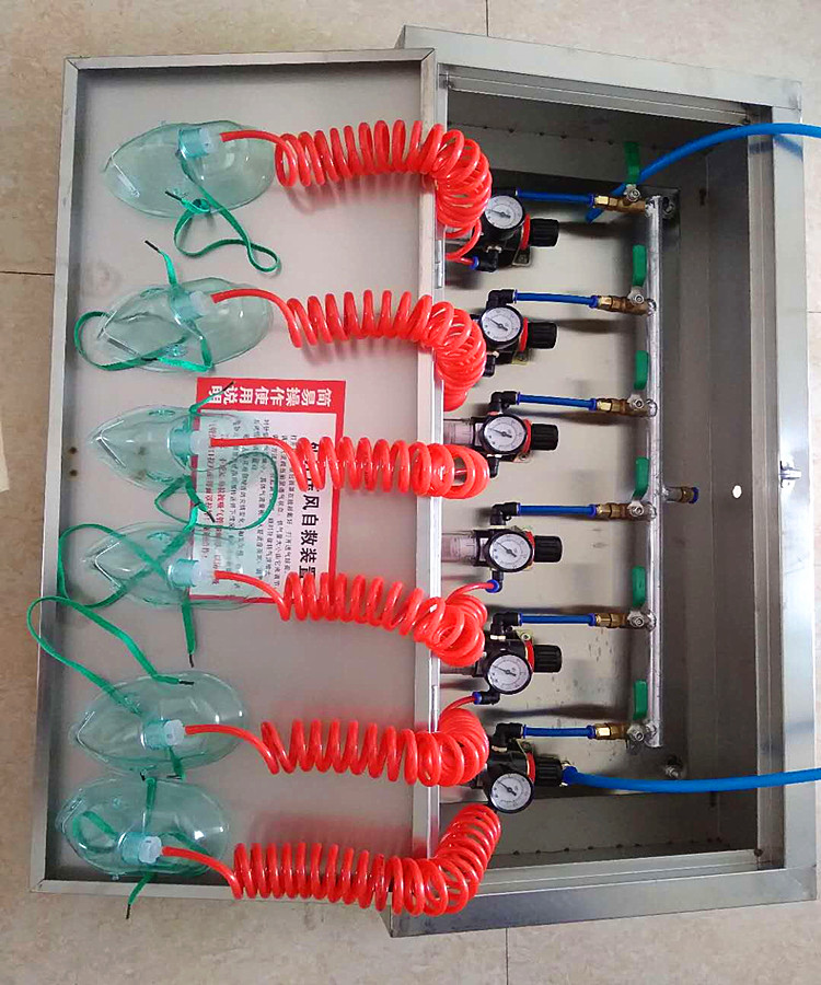 5、使用后關(guān)閉調(diào)節(jié)閥⑥,將各組呼吸器有序放入箱體內(nèi),關(guān)好箱門。